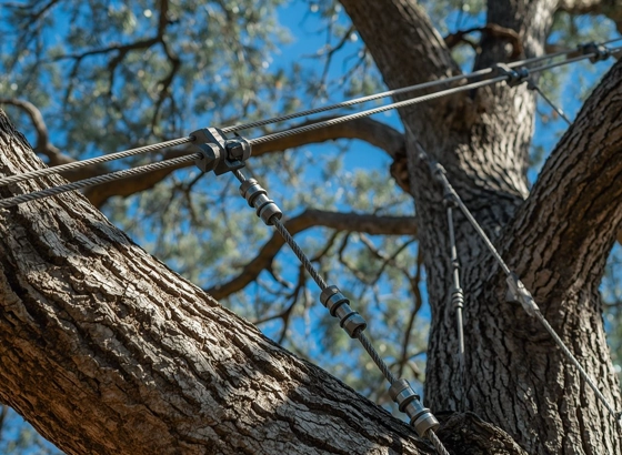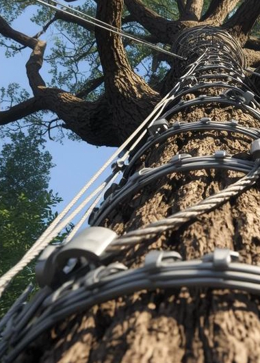 Our skilled arborists use specialized equipment and adhere to the highest industry safety standards for installation. We carefully drill to place the hardware, ensuring the tree's vascular system remains undisturbed. Cables and rods are then secured to provide immediate, robust stability.